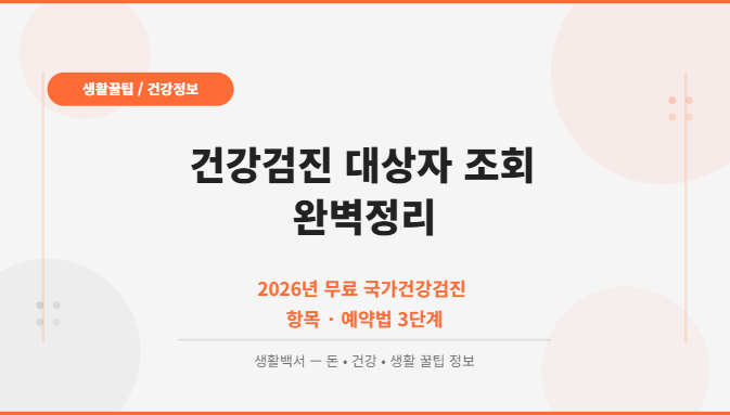 매년 수백만 명이 국가건강검진 혜택을 받지 못한 채 한 해를 넘깁니다. 건강검진 대상자 조회를 미루다 기간이 지나버리거나, 자신이 대상자인지 몰라 그냥 지나치는 경우가 많습니다. 이 글에서는 2026년 무료 건강검진 대상자 확인 방법부터 예약·결과 해석까지 한 번에 정리해 드립니다.